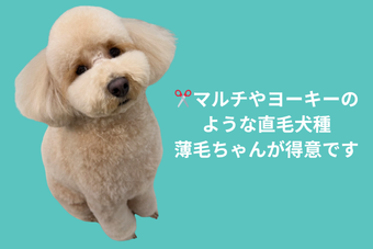 そのため、モデル犬の写真と全く同じように仕上がるとは限りません。例えば、毛が柔らかい子に立ち上がりのあるカットは難しかったり、毛量が少ない子ではボリューム感が出せなかったりすることもあります。